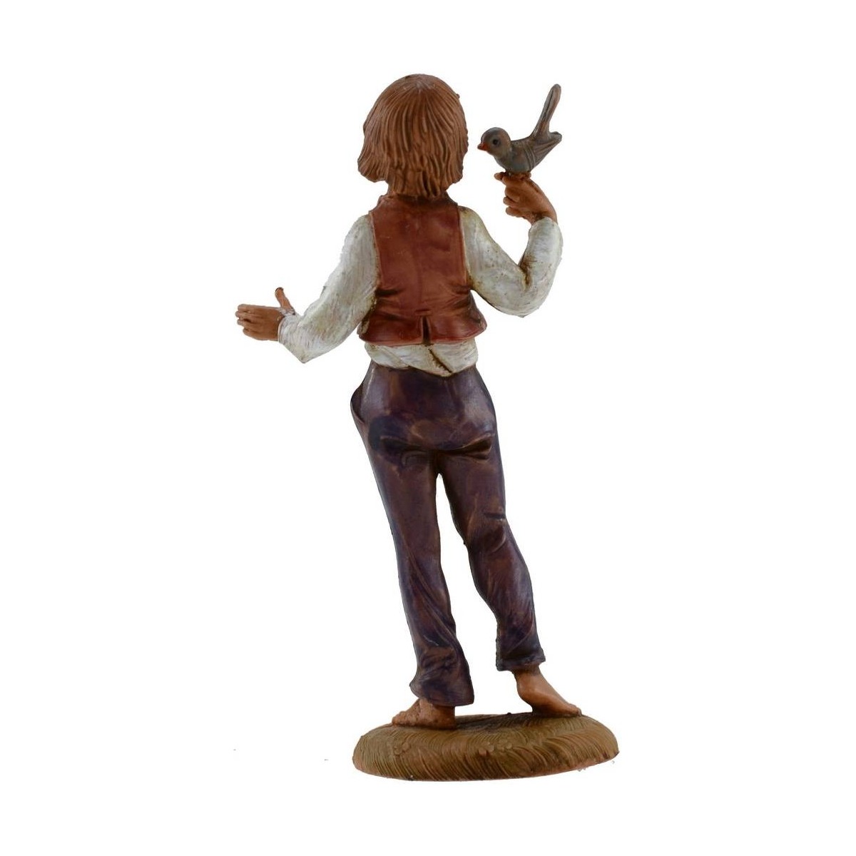 Fanciullo scalzo con uccellino serie 12 cm Fontanini dipinto a mano. Le statue del presepe tradizionale Fontanini hanno volti espressivi e ben rifiniti nei dettagli.