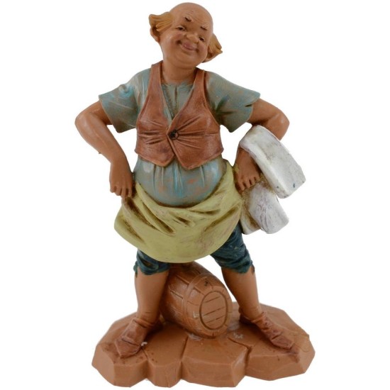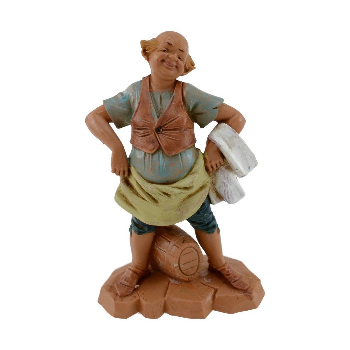 Oste con botte serie 12 cm Fontanini dipinto a mano. Le statue del presepe tradizionale Fontanini hanno volti espressivi e ben rifiniti nei dettagli.