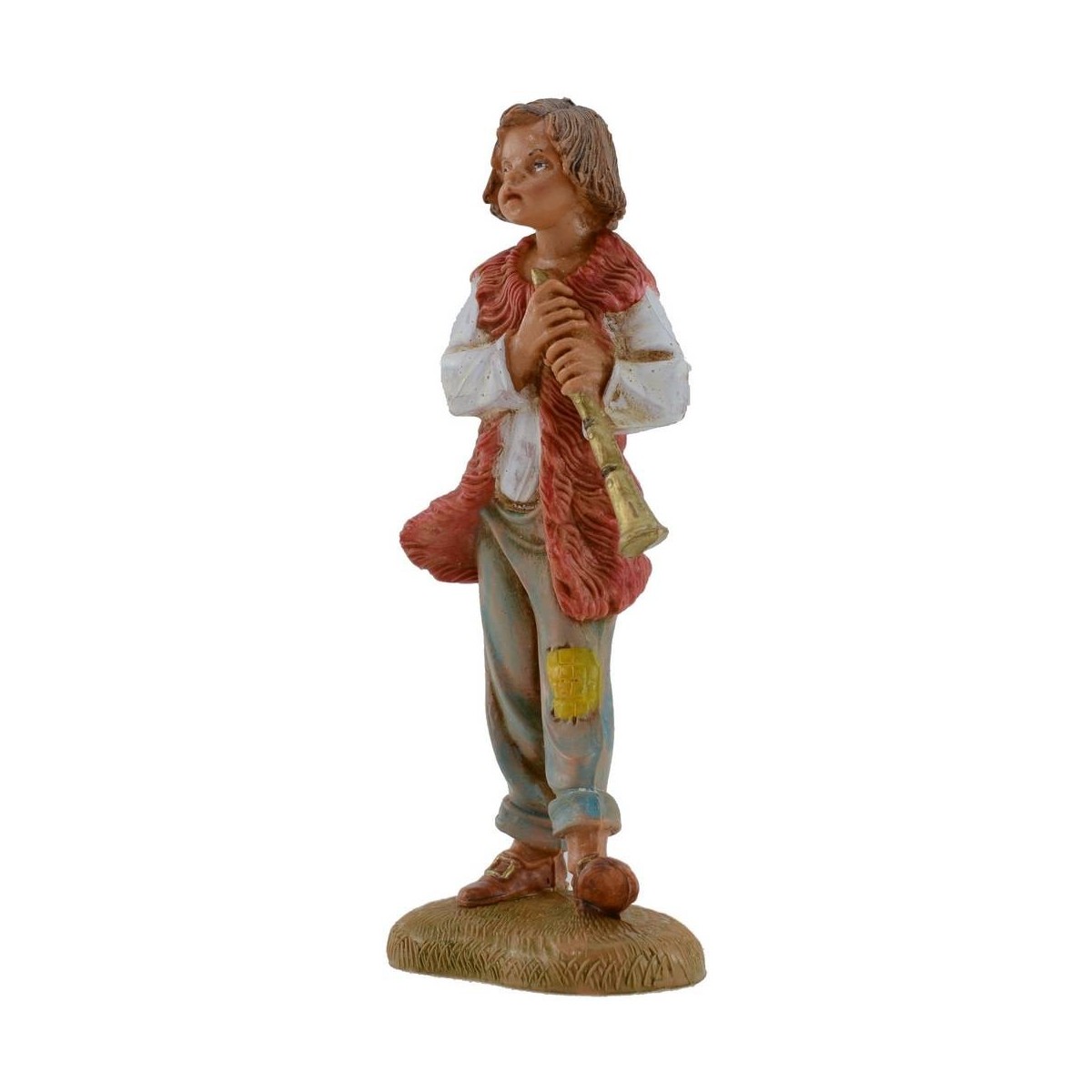 Giovane suonatore di piffero serie 12 cm Fontanini dipinto a mano. Le statue del presepe tradizionale Fontanini hanno volti espressivi e ben rifiniti nei dettagli.