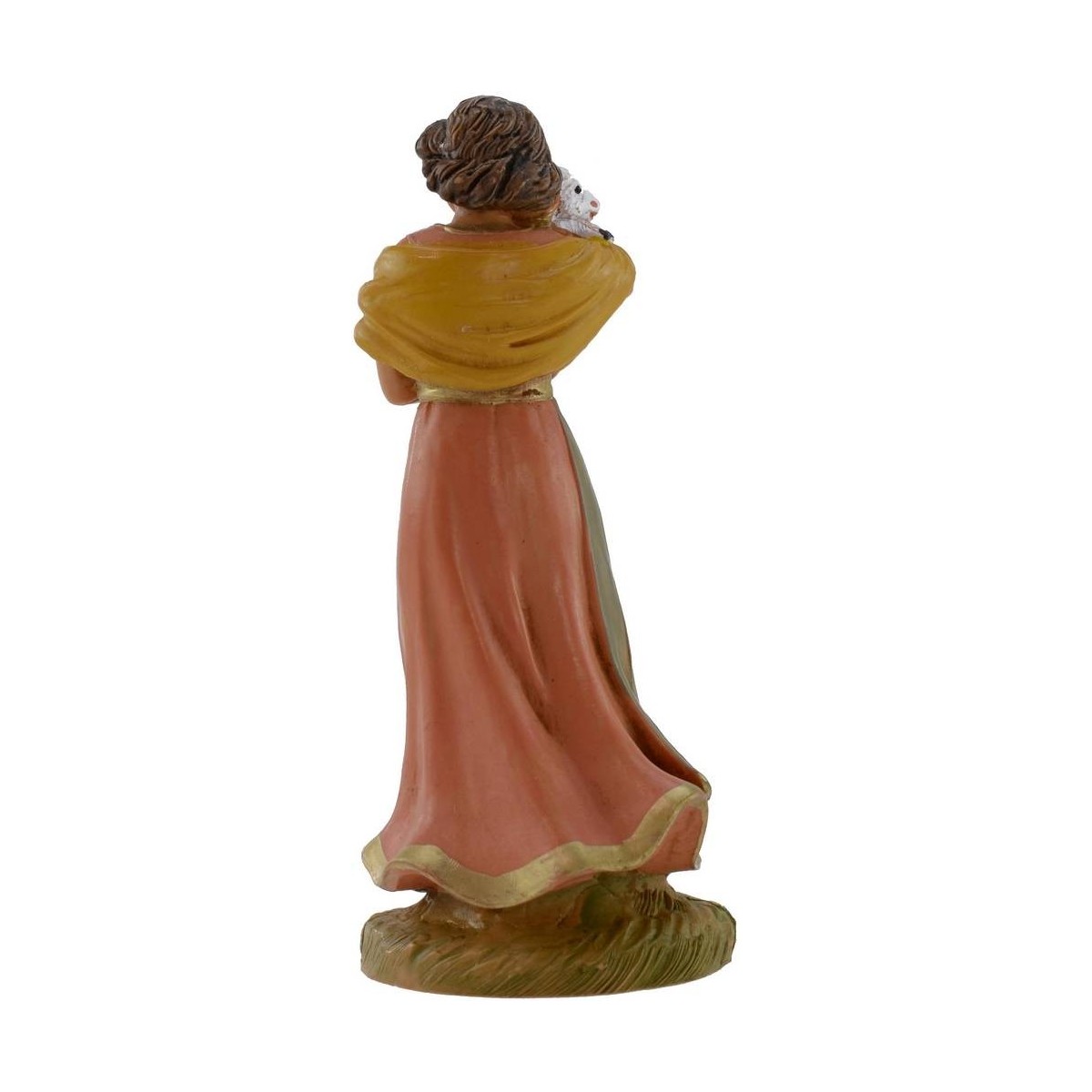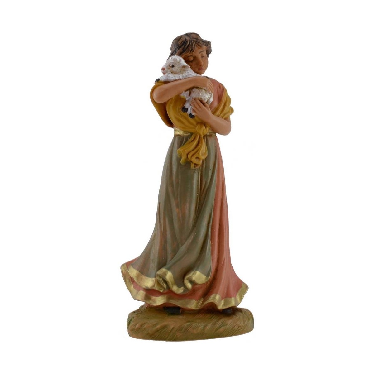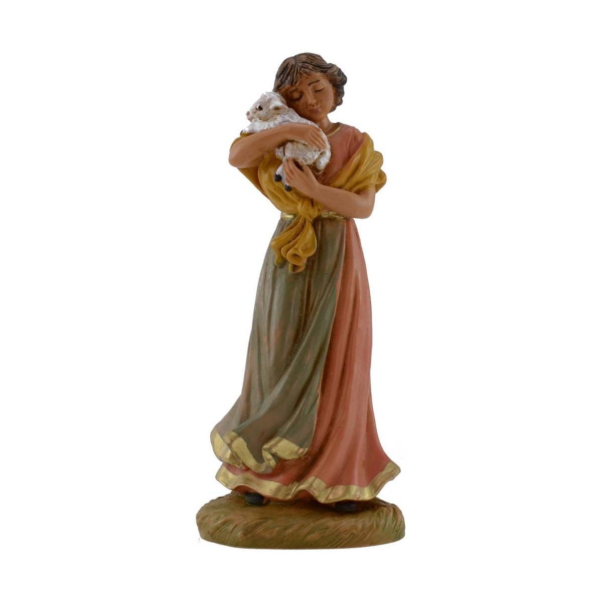 Giovane pastorella con agnellino in grembo serie 12 cm Fontanini dipinto a mano. Le statue del presepe tradizionale Fontanini hanno volti espressivi e ben rifiniti nei dettagli.