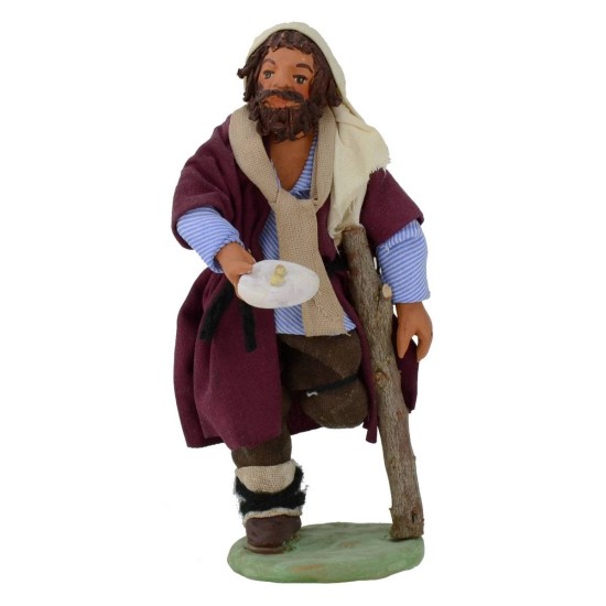 Mendicante senza gamba che si sorregge col bastone. La statua è in terracotta ben rifinita in tutti i minimi particolari con vestiti in tessuto indurito, essendo realizzato completamente a mano potrebbero variare leggermente i colori dei vestiti e del viso rispetto alla foto. Prodotto artigianale realizzato dai migliori artisti italiani.