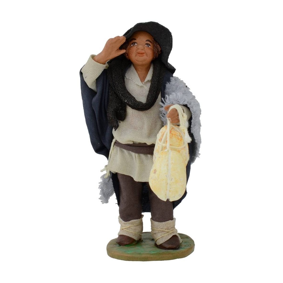 Venditore di formaggi con cappello. La statua è in terracotta ben rifinita in tutti i minimi particolari con vestiti in tessuto indurito, essendo realizzato completamente a mano potrebbero variare leggermente i colori dei vestiti e del viso rispetto alla foto. Prodotto artigianale realizzato dai migliori artisti italiani.