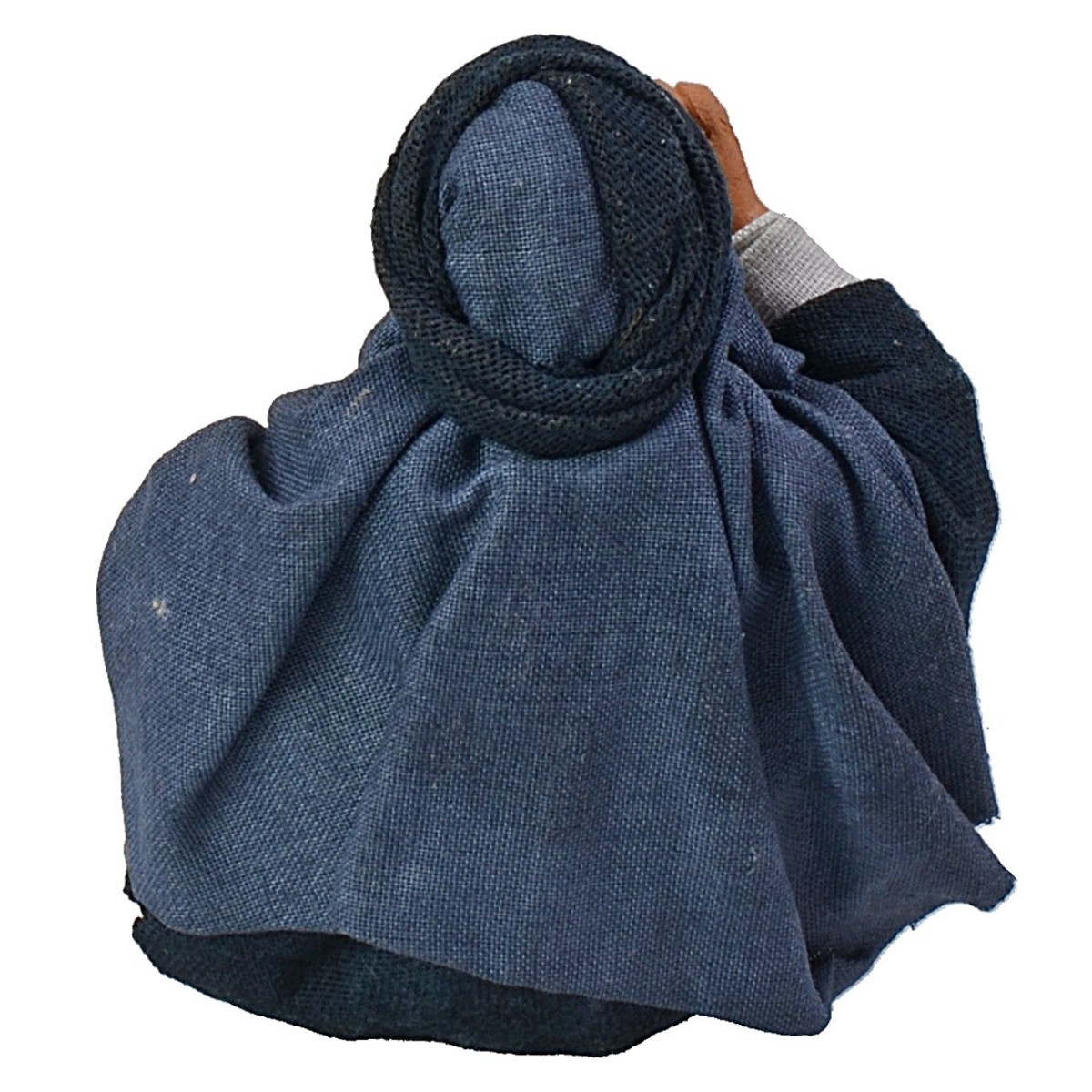 È modellata in terracotta con grande cura nei particolari e completata da abiti in tessuto indurito applicati artigianalmente, che conferiscono realismo e movimento alla figura.