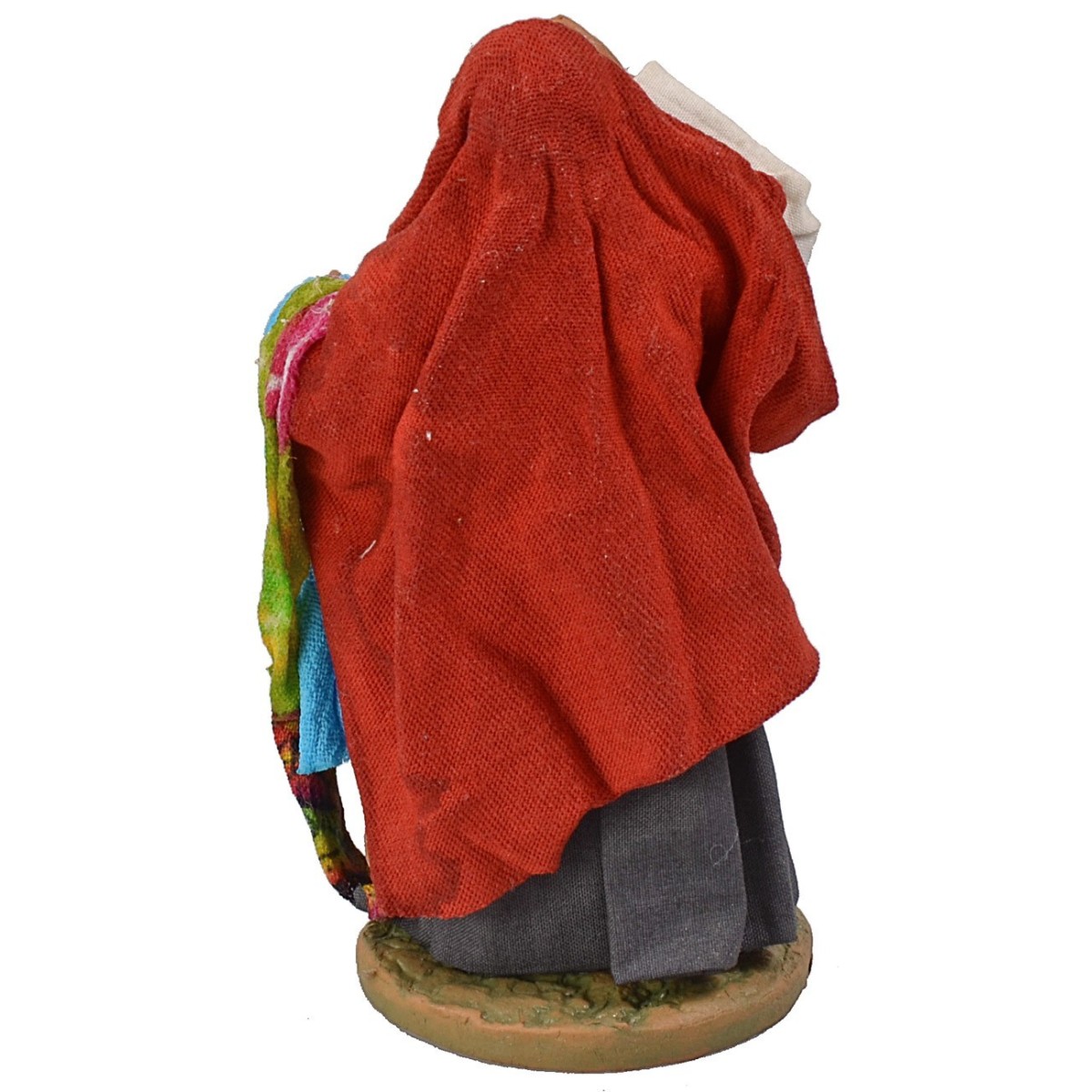 Donna che vende stoffe. La statua in terracotta risulta ben rifinita ed indossa abiti in tessuto indurito; essendo stata realizzata completamente a mano potrebbero variare i colori dei vestiti e del viso rispetto alla foto. L'articolo è stato prodotto artigianalmente in Italia.