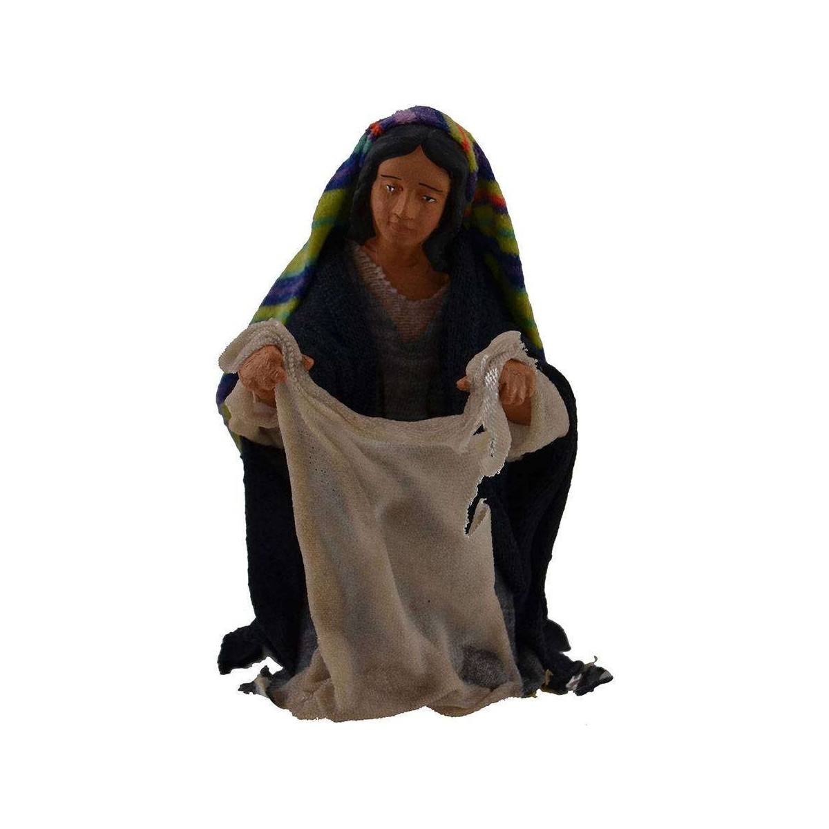 Statua in terracotta rifinita nei minimi particolari con vestiti in tessuto indurito, essendo realizzati completamente a mano possono variale leggermente i colori dei vestiti e i visi delle statue rispetto alla foto.