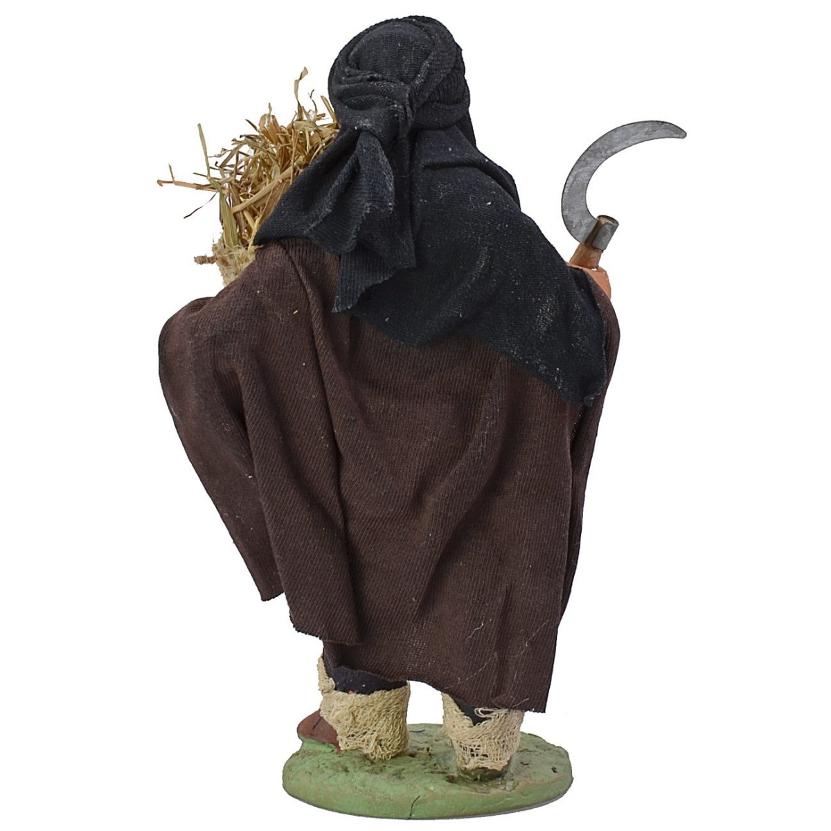Contadino che impugna la falce in una mano e una fascina nell'altra, la statua è in terracotta ben rifinita in tutti i minimi particolari con vestiti in tessuto indurito, essendo realizzata completamente a mano potrebbero variare leggermente i colori dei vestiti e del viso rispetto alla foto. Prodotto artigianale realizzato dai migliori artisti italiani.