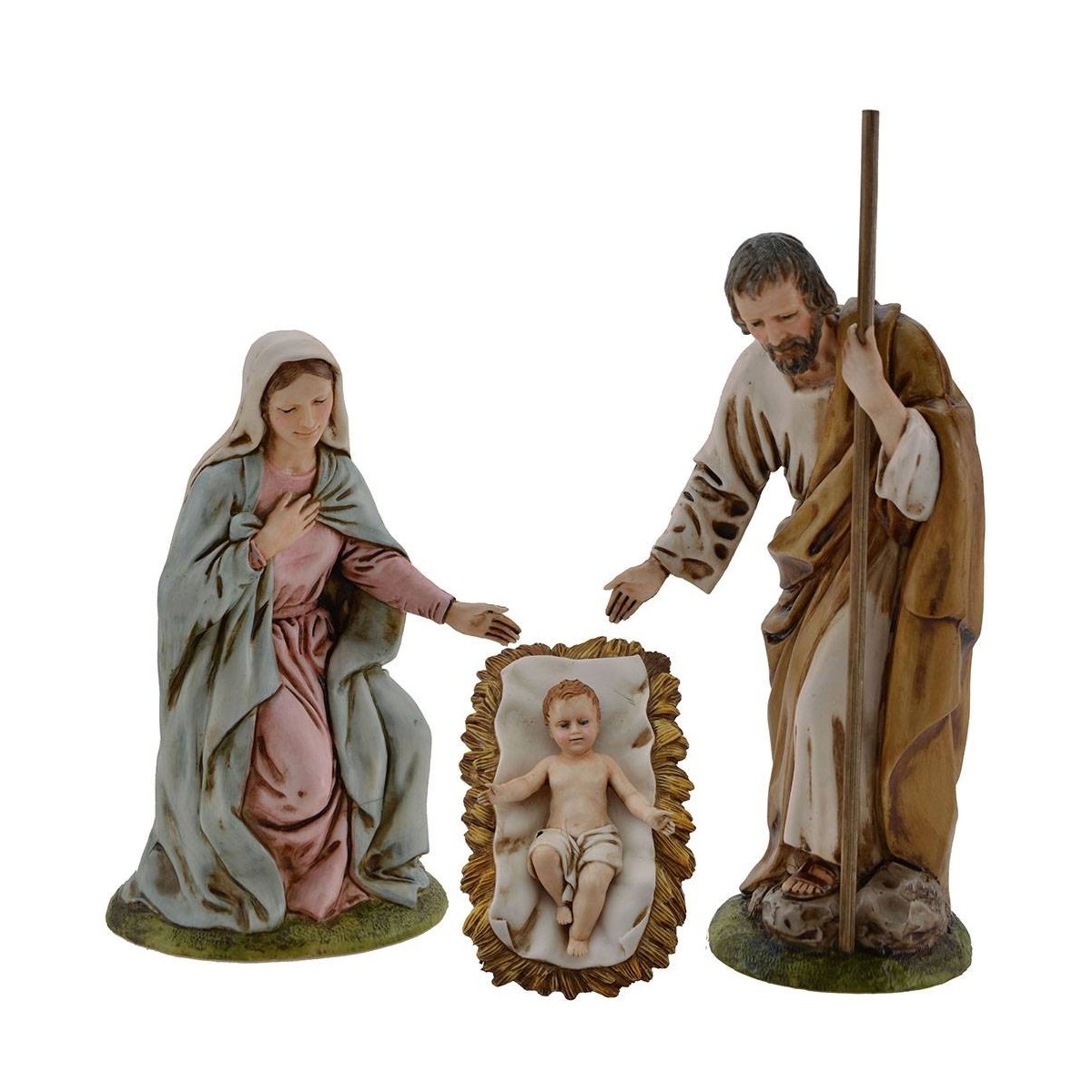 Natività serie Landi Moranduzzo 16 cm composta da 3 pezzi: San Giuseppe, Madonna e Gesù nella culla.