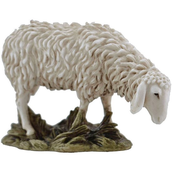 Pecora in resina serie Landi Moranduzzo 15 cm; sapientemente scolpita dalle abili mani del omonimo scultore Martino Landi. Tutta la serie è dipinta a mano ed interamente prodotta in Italia. Questa serie è nota per le linea armoniose ed espressive, per le delicate sfumature di colore che contribuiscono a rendere le figure per presepe ancor più realistiche.