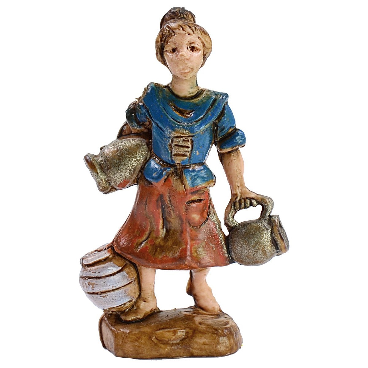 Donna con anfore in pvc di altezza 3,5 cm. Nel nostro negozio troverai un vasto assortimento di statue per il presepe in vari materiali e altezze.