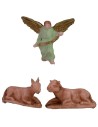 Natività con 8 soggetti 1,5 cm in pvc patinato composta da: San Giuseppe, Maria inginocchiata, Gesù Bambino, bue e asino, angelo e due pastori.