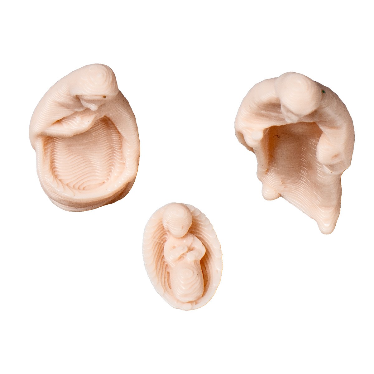 Natività stilizzata in plastica serie 3 cm con San Giuseppe, Maria e Gesù Bambino nella culla.