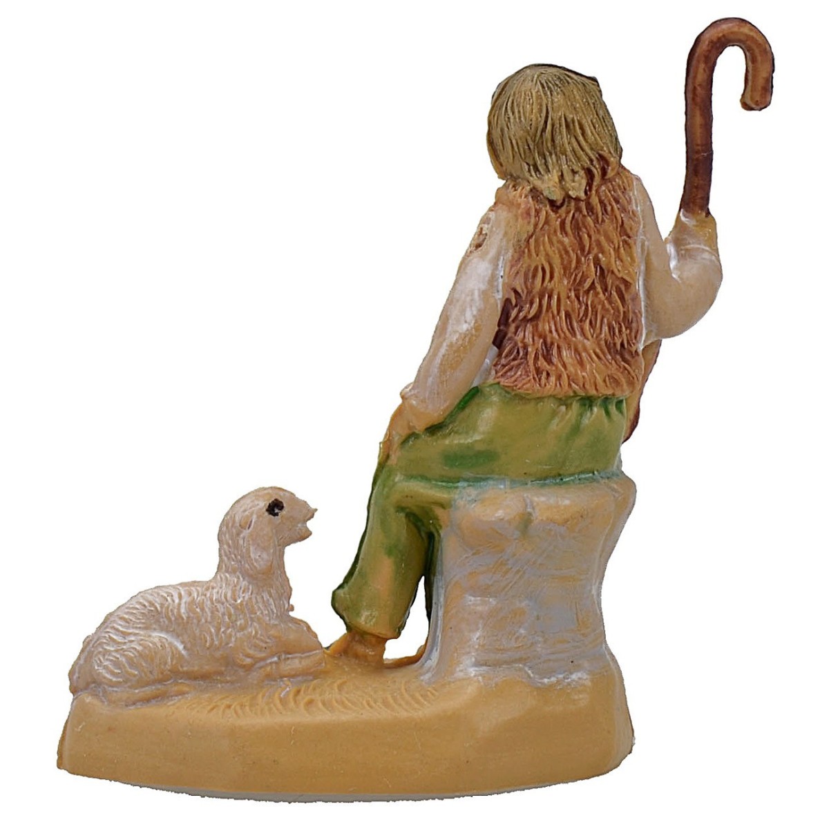 Vecchio pastore seduto su una pietra con accanto la sua pecora serie 4 cm in pvc.