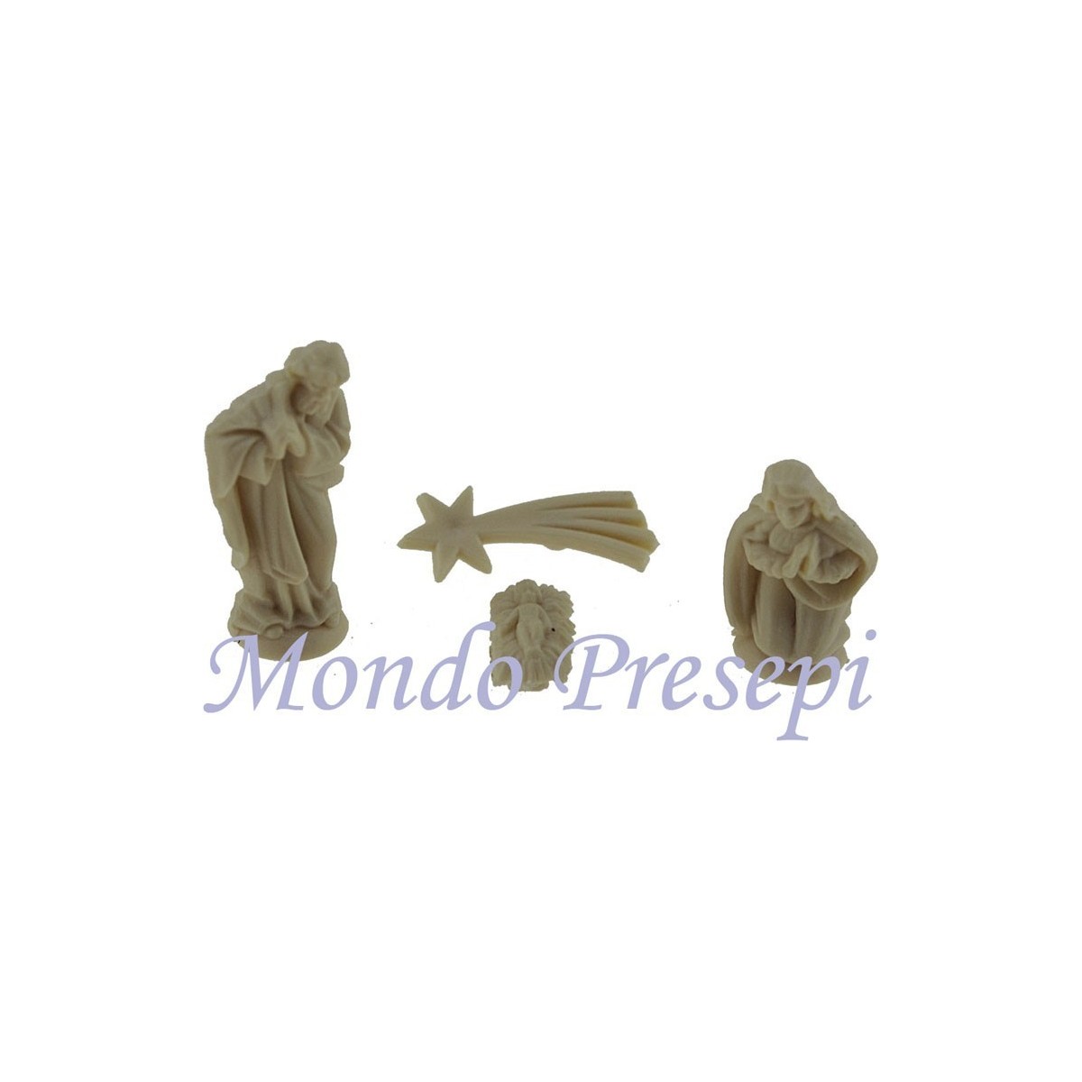 Natività cm 3: San Giuseppe, Maria, Bambinello e stella cometa.