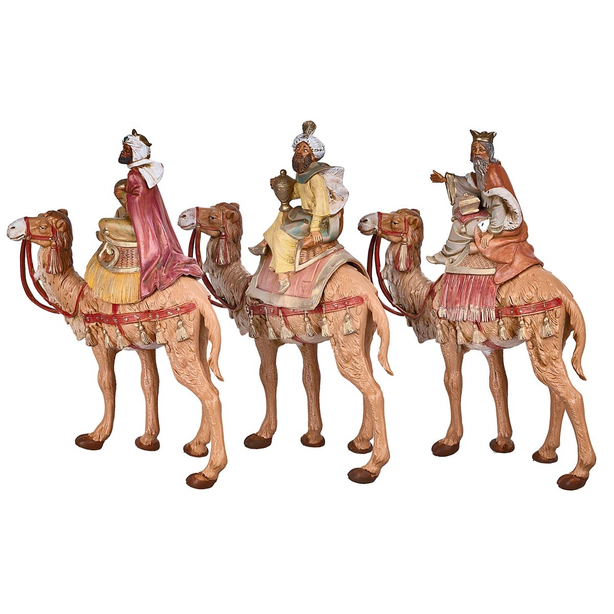 Set di tre Re Magi seduti sui loro cammelli della serie da 19 cm di Fontanini.