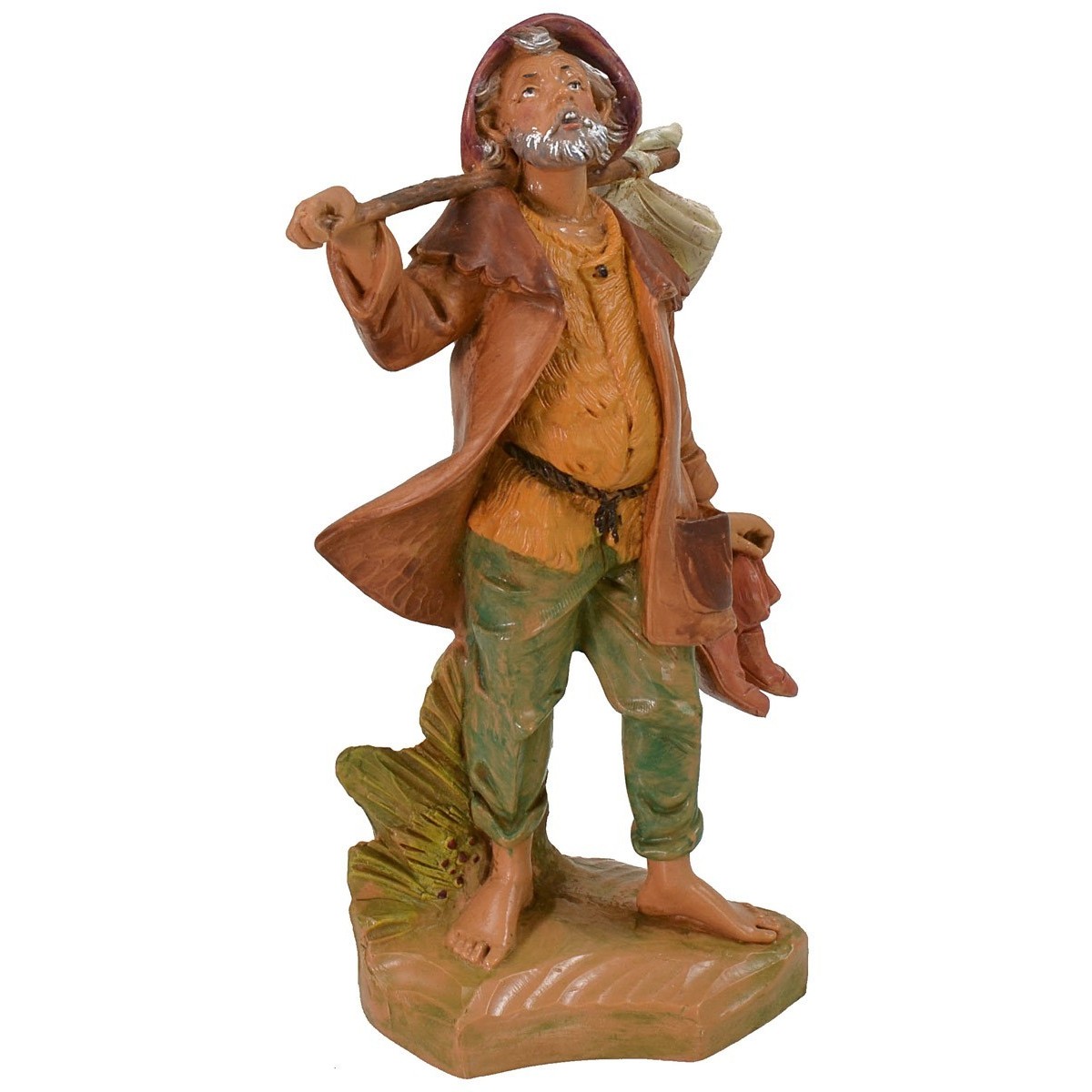 Viandante scalzo con fagotto 19 cm Fontanini dipinto a mano. Le statue del presepe tradizionale Fontanini hanno volti espressivi e ben rifiniti nei dettagli.