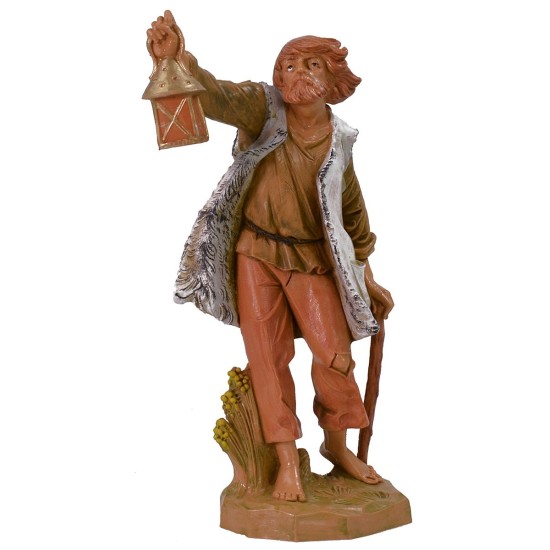 Vecchio con lanterna 19 cm Fontanini dipinto a mano. Le statue del presepe tradizionale Fontanini hanno volti espressivi e ben rifiniti nei dettagli.
