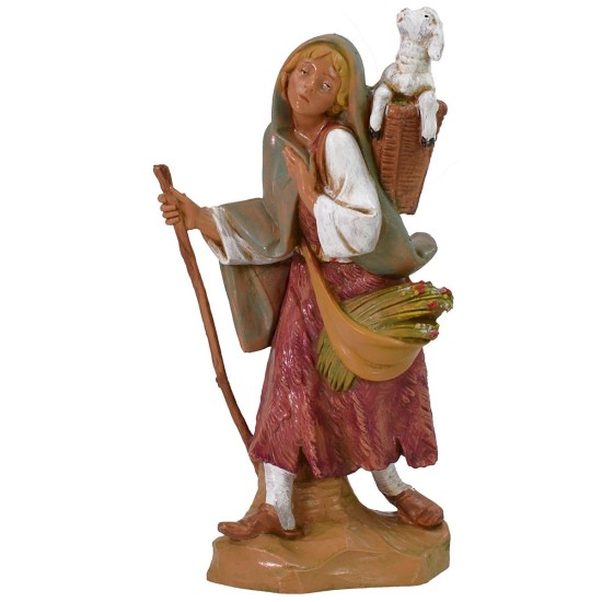 Pastorella con agnello nella gerla 19 cm Fontanini Mondo Presepi