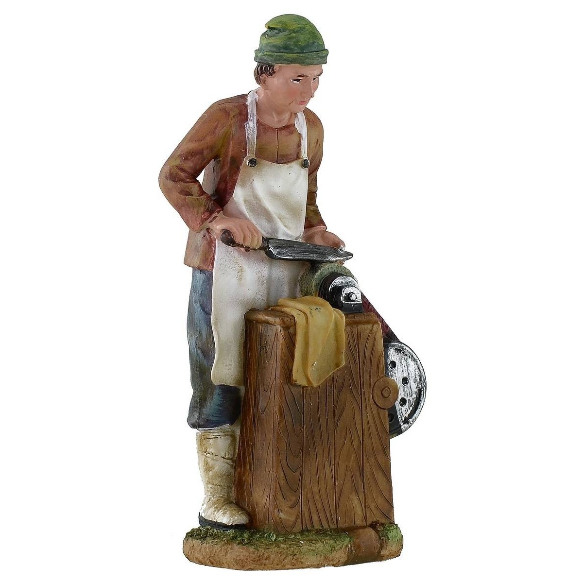 Uomo che affila i coltelli in resina, altezza 20 cm.