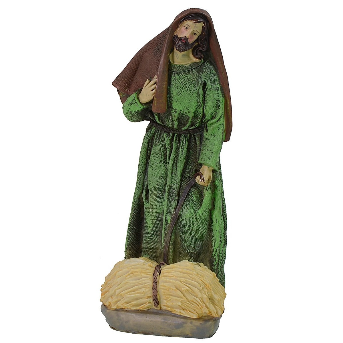 Contadino palestinese in resina 25 cm con un grande copricapo ed una balla di paglia davanti.