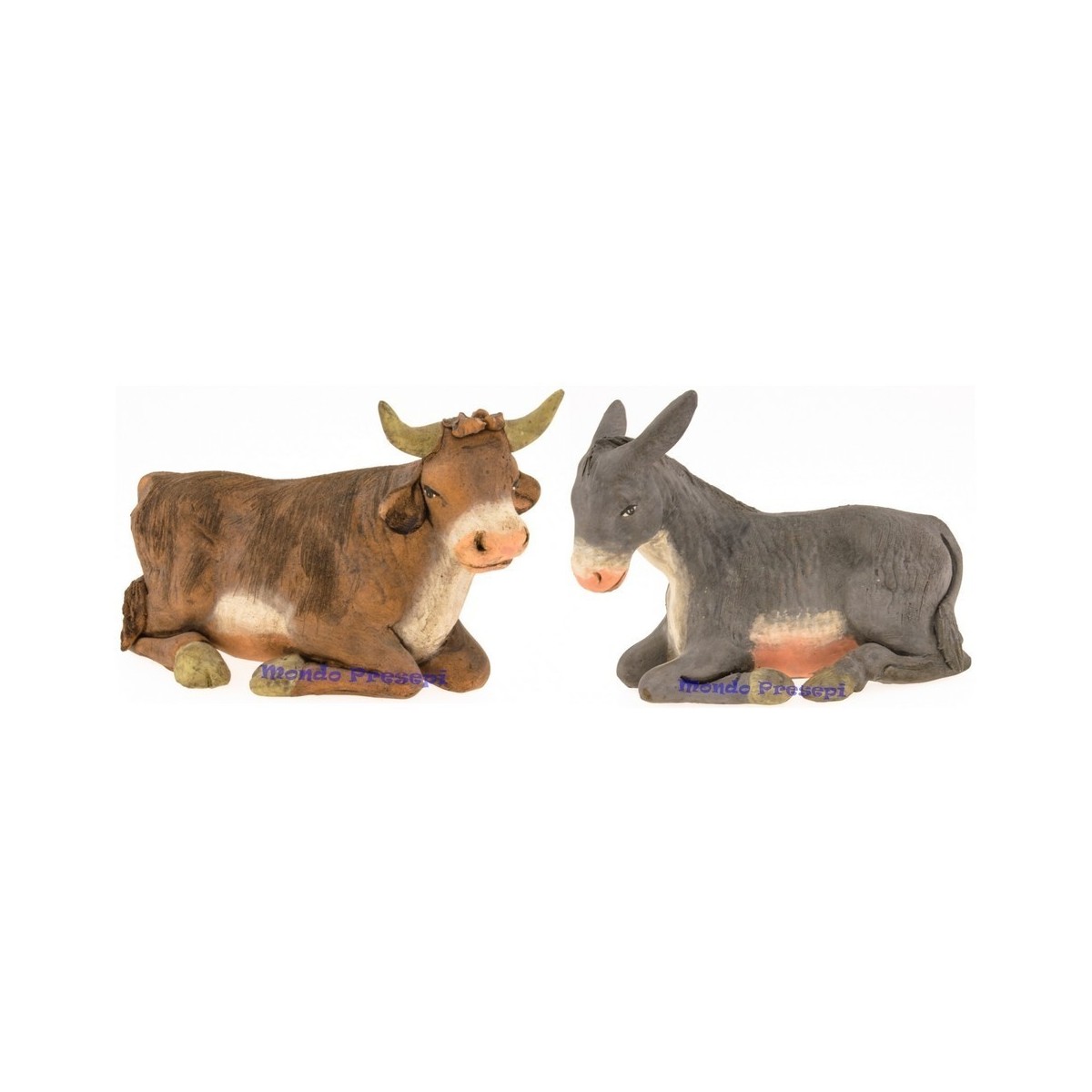 Set 2 pezzi composto da Bue e Asino in terracotta per statue di altezza cm14-15.