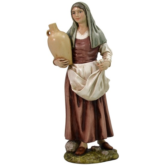 Donna con anfora e velo in resina serie Landi Moranduzzo 18 cm; statua sapientemente scolpita dalle abili mani del omonimo scultore Martino Landi. Tutta la serie è dipinta a mano ed interamente prodotta in Italia. Questa serie di statue per presepe è nota per le linea armoniose ed espressive, per le delicate sfumature di colore che contribuiscono a rendere le figure per presepe ancor più realistiche.