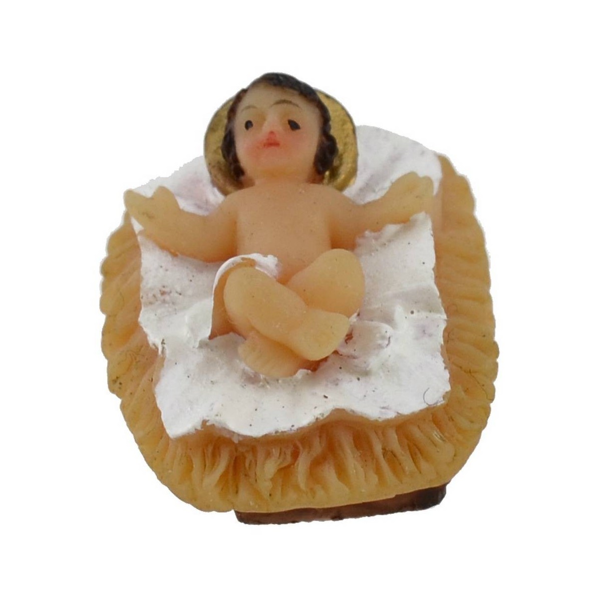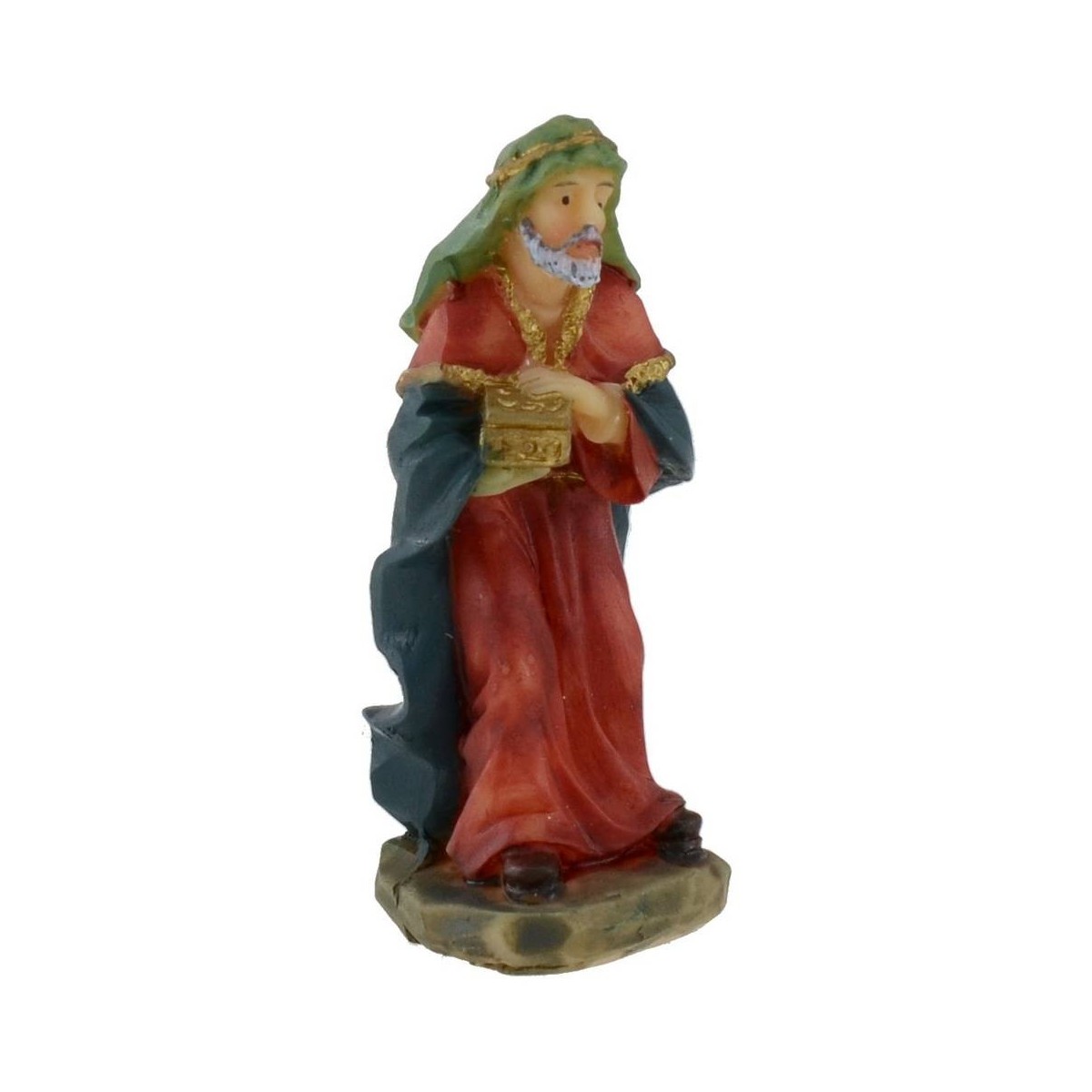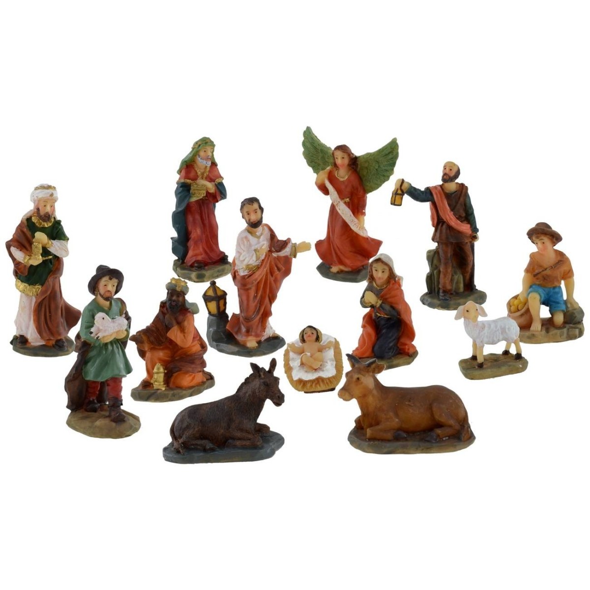 Set 13 statuine altezza 5 cm in resina per presepe composto dalla Natività (San Giuseppe, Maria, Gesù, bue e asino), i Tre Re Magi, l'angelo e 2 Pastori.