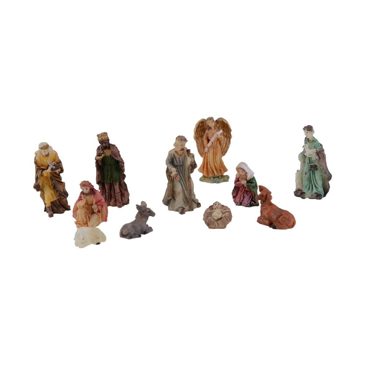 Set 11 statuine altezza 5 cm in resina per presepe composto dalla Natività (San Giuseppe, Maria, Gesù, bue e asino), i Tre Re Magi, l'angelo, pastore e pecora.