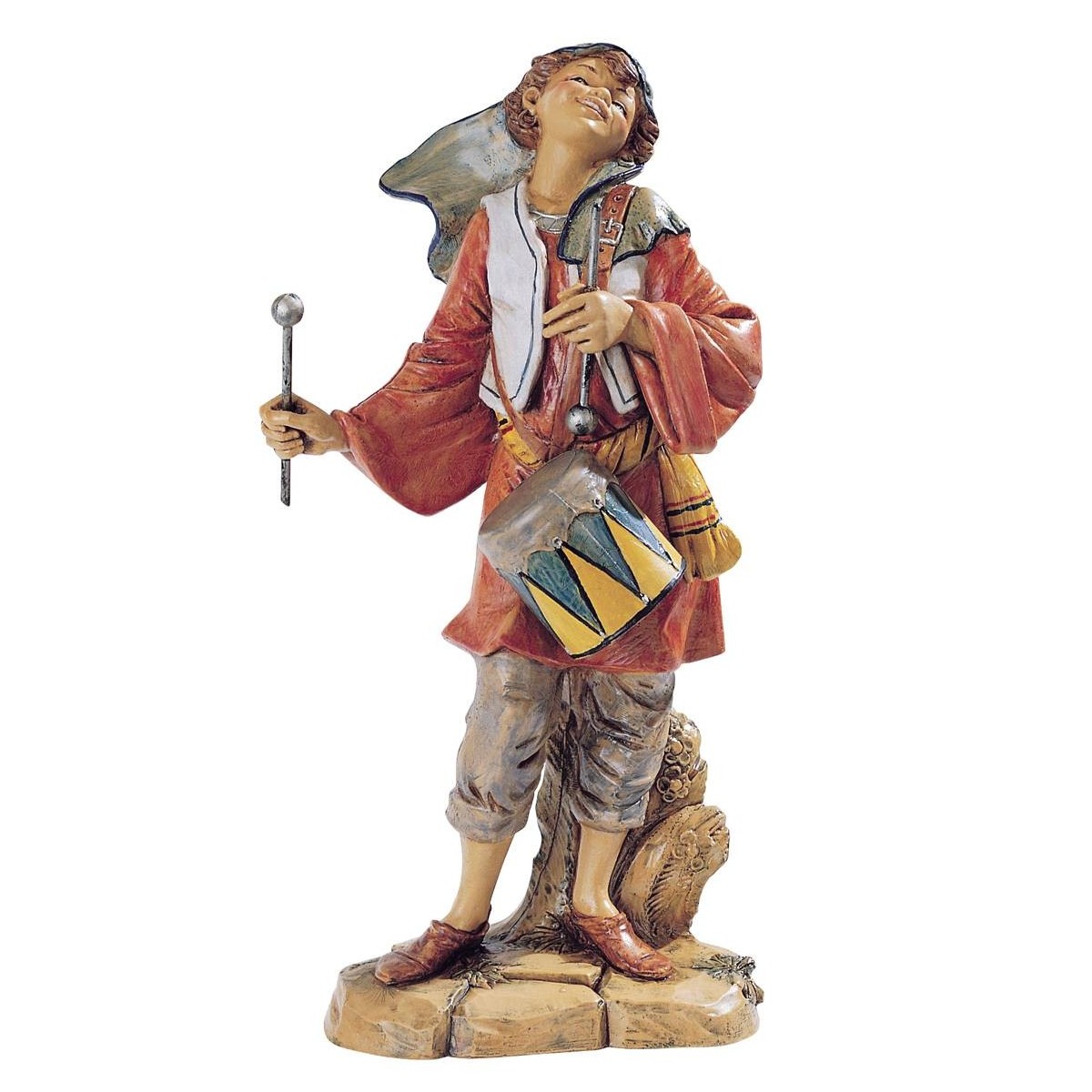 Suonatore di tamburo 30 cm Fontanini dipinto a mano ed adatto anche per ambienti esterni. Statua del presepe tradizionale Fontanini con volto espressivo e ben rifinita nei dettagli.