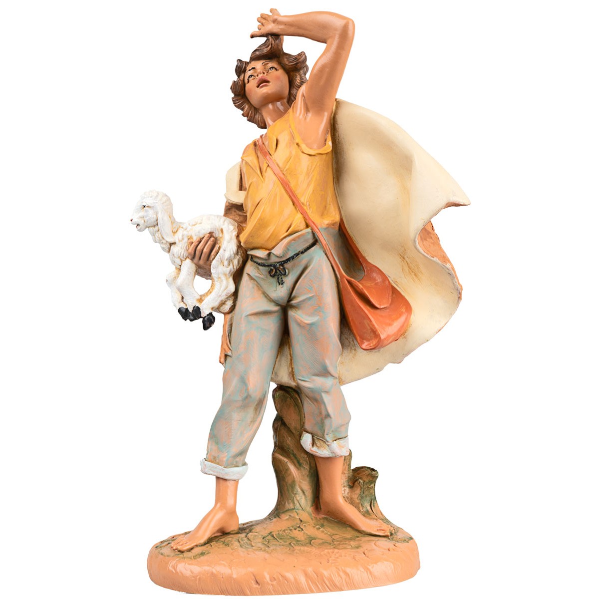 Pastore con pecora e mantello 30 cm Fontanini, dipinto a mano ed adatto anche per ambienti esterni. Statua del presepe tradizionale Fontanini con volto espressivo e ben rifinita nei dettagli.