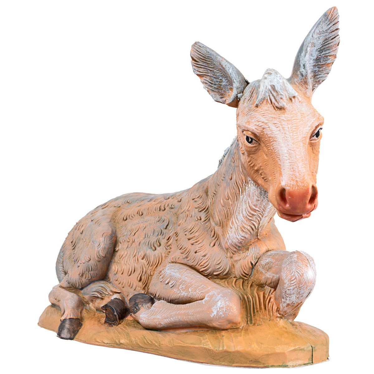 Asino seduto serie 30 cm Fontanini, dipinto a mano ed adatto anche per ambienti esterni. Statua del presepe tradizionale Fontanini con volto espressivo e ben rifinita nei dettagli.