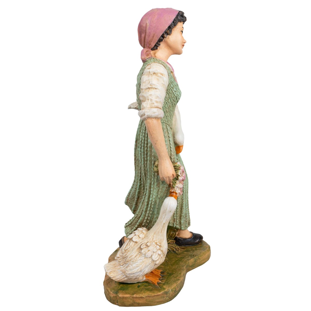 Donna con oche e mazzo di fiori serie Euromarchi per presepe altezza 30 cm.