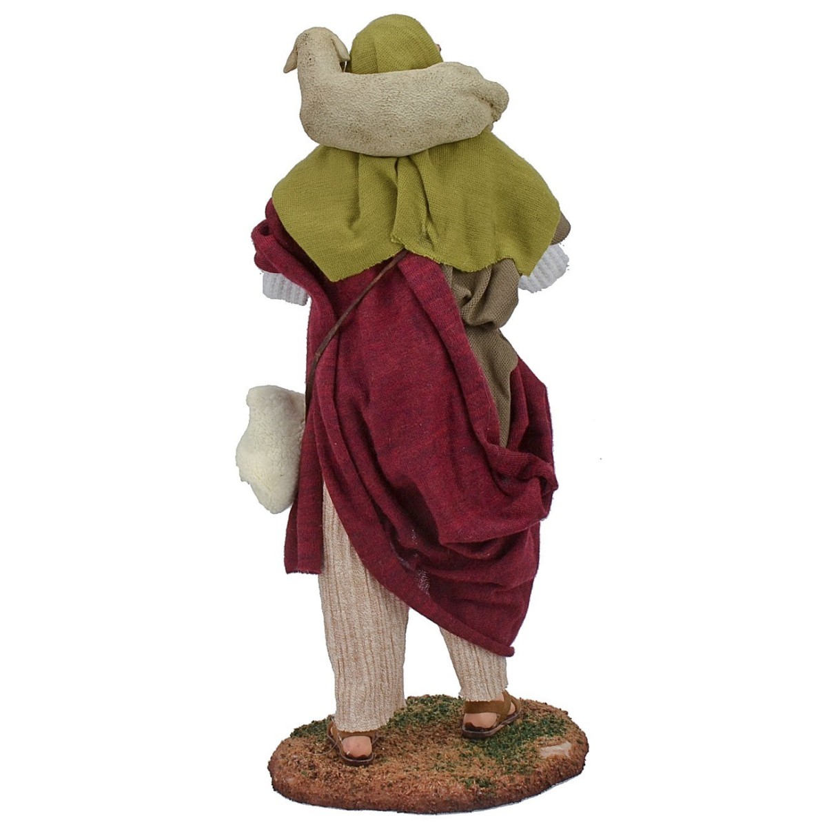 Uomo palestinese con sacca a tracolla e agnello tenuto sulle spalle. Statua artistica per presepe di altezza 30 cm realizzata in resina, la meticolosità nello studio dei dettagli e l'espressività dei visi sono caratteristiche che contraddistinguono tutta la serie Pigini oltre che abiti in tessuti finemente cuciti a seconda dei soggetti. E' possibile modificare la posizione di ogni statue ed eliminare la base a seconda delle esigenze. Si fa presente che essendo un prodotto totalmente artigianale i colori degli abiti potrebbero variare.
