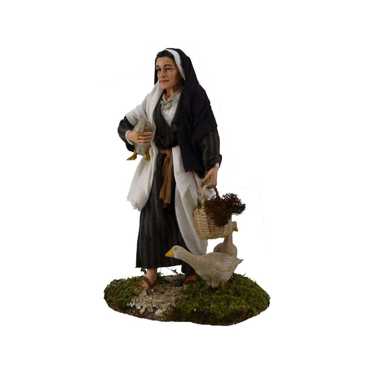 Vecchia con oche in resina vesto in tessuto (il colore dei vestiti può variare rispetto alla fotografia)