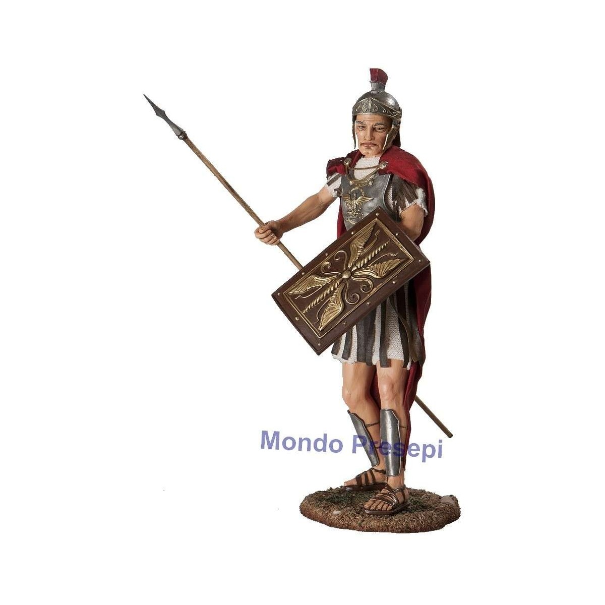 Soldato con lancia e scudo cm 30, statua artistica in resina rivestita con stoffe.