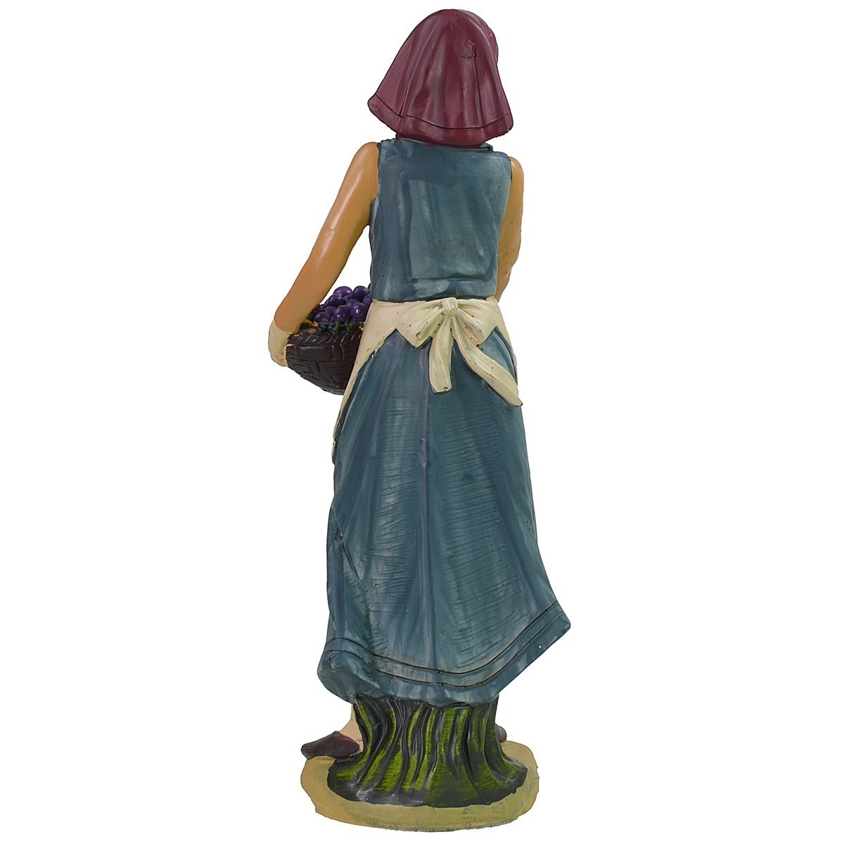 Fruttivendola in resina serie 40 cm che regge tra le mani un cesto colmo di frutta da vendere.