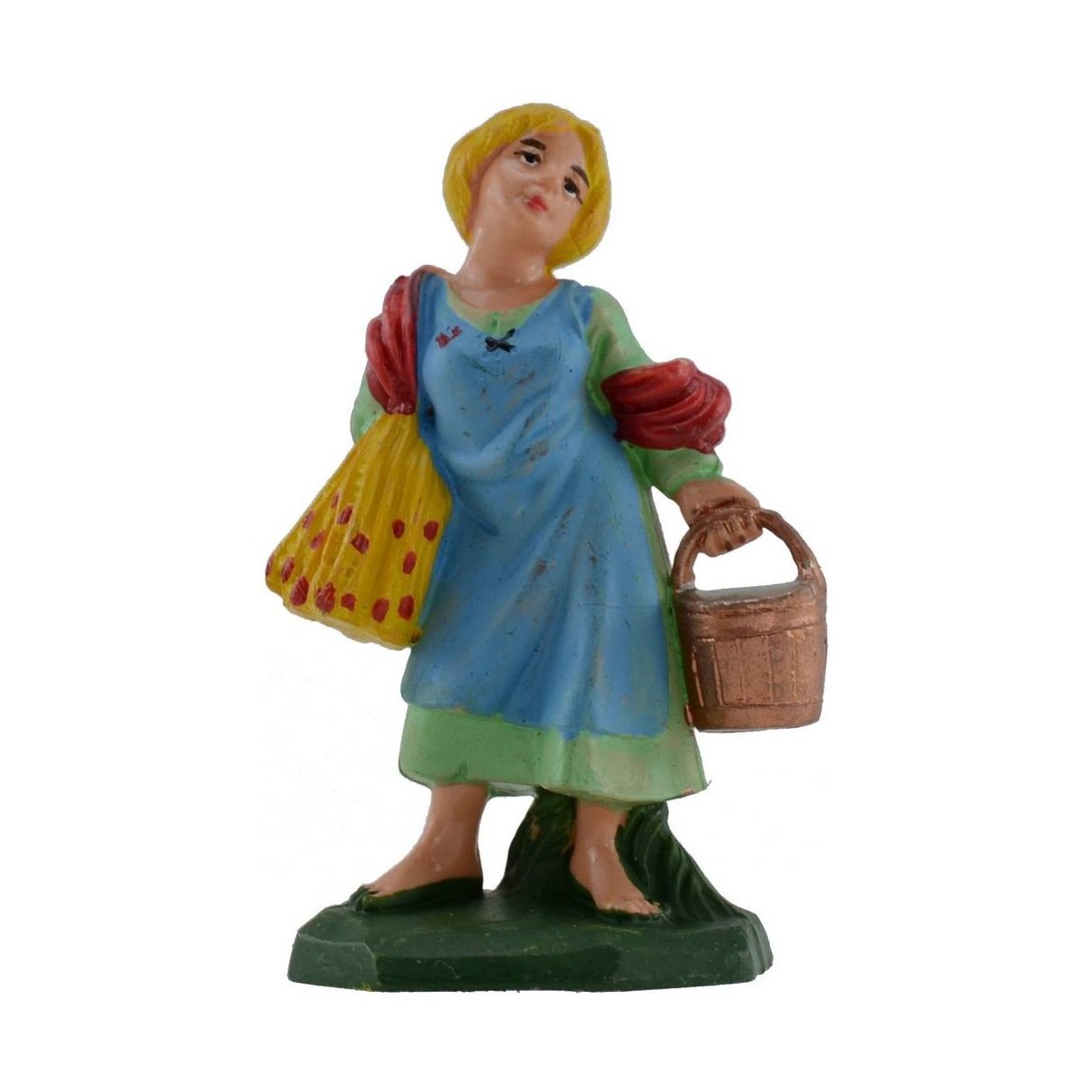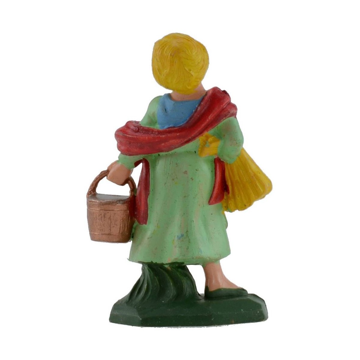 Donna con secchio e fascio di paglia in pvc 6 cm