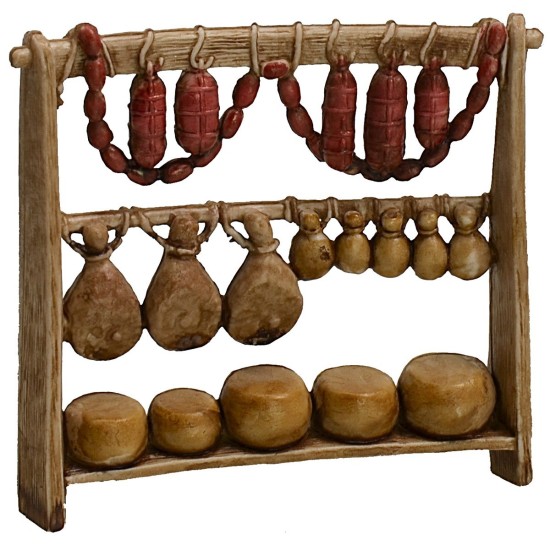 Banco del salumiere con formaggi e salumi per statue Landi Moranduzzo cm 6.