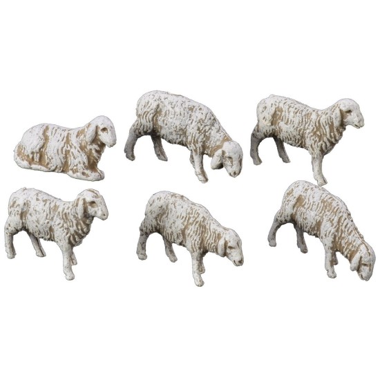 Set 6 pecorelle ben rifinite della Landi Moranduzzo per statue della serie 6 cm. Ricordiamo che la serie di statue Landi Moranduzzo 6 cm misura realmente circa 5,5 cm.