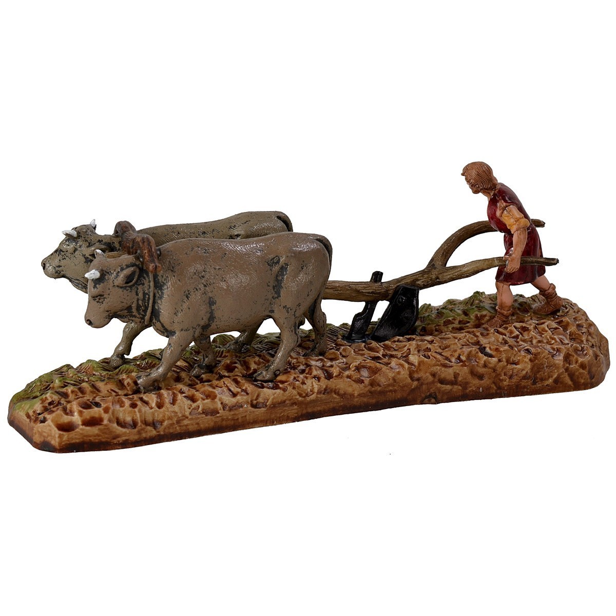 Contadino che zolla il terreno con L'aratro trainato da due buoi cm 6 Landi Moranduzzo, precisiamo che la serie 6 cm ha un'altezza reale di circa 5,5 cm.