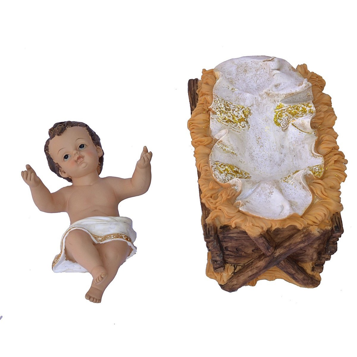 Natività 3 personaggi serie 60 cm in resina dipinta a mano, le statue sono così composte: San Giuseppe con bastone e lanterna , Maria inginocchiata, Gesù bambino rimovibile dalla culla.