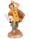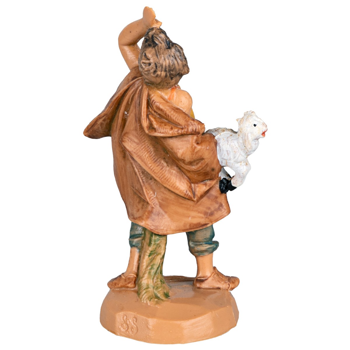 Giovane pastore con mantello e pecora in mano 6,5 cm Fontanini dipinto a mano. Le statue del presepe tradizionale Fontanini hanno volti espressivi e ben rifiniti nei dettagli.