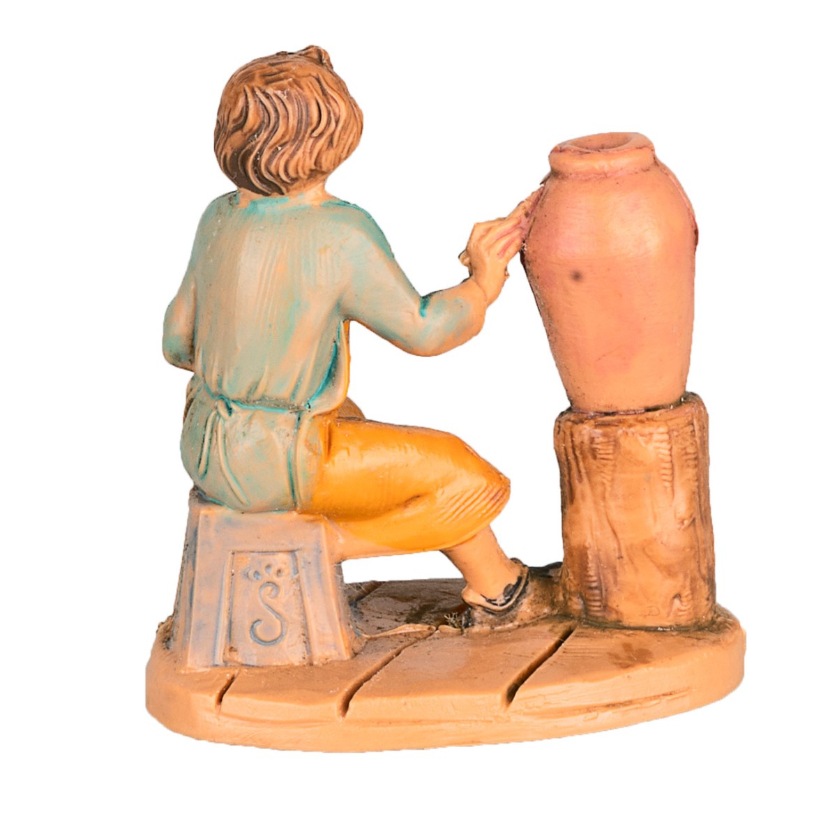 Ceramista seduto che dipinge serie 6,5 cm Fontanini dipinto a mano. Le statue del presepe tradizionale Fontanini hanno volti espressivi e ben rifiniti nei dettagli.