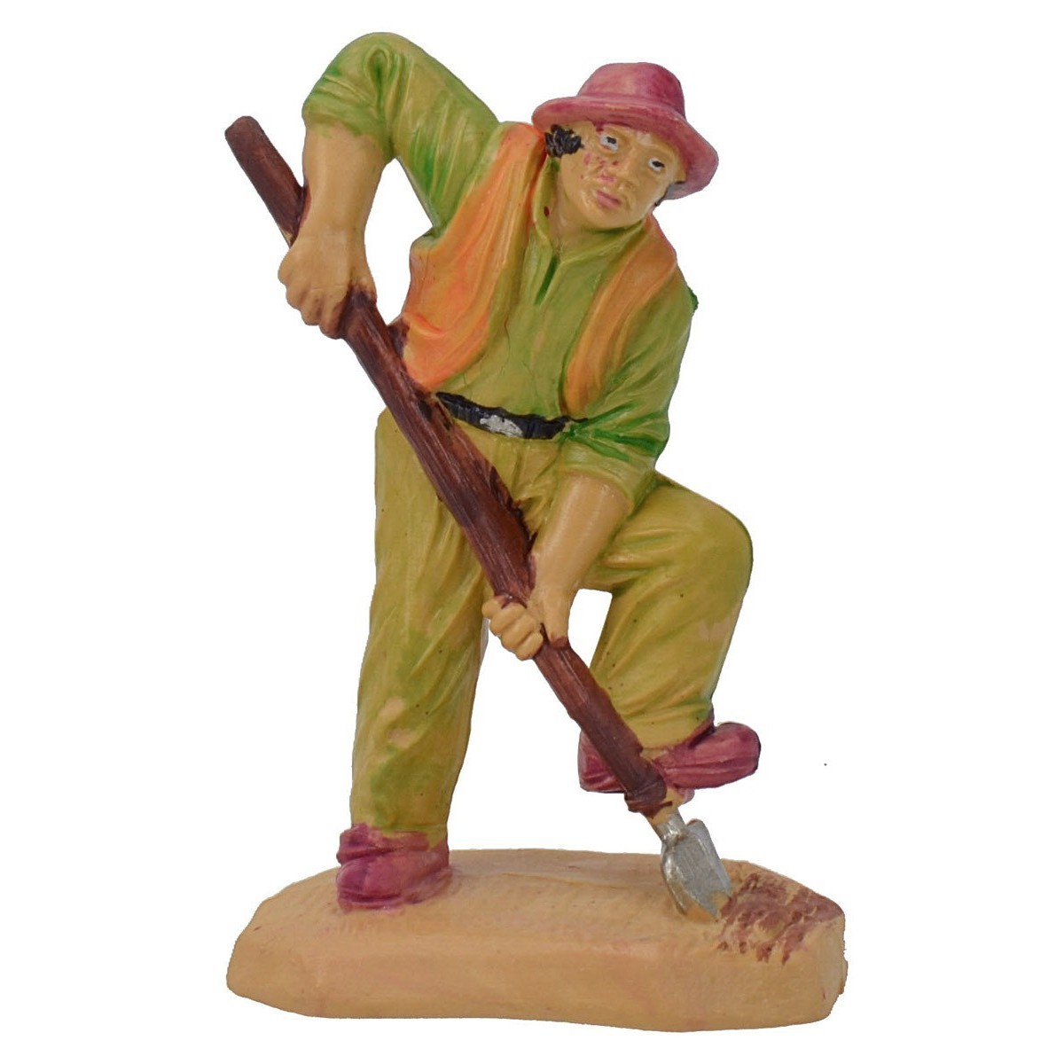 Uomo con badile che vanga il terreno. La statuina per presepe è realizzata in pvc appartiene alla serie lux 8 cm.