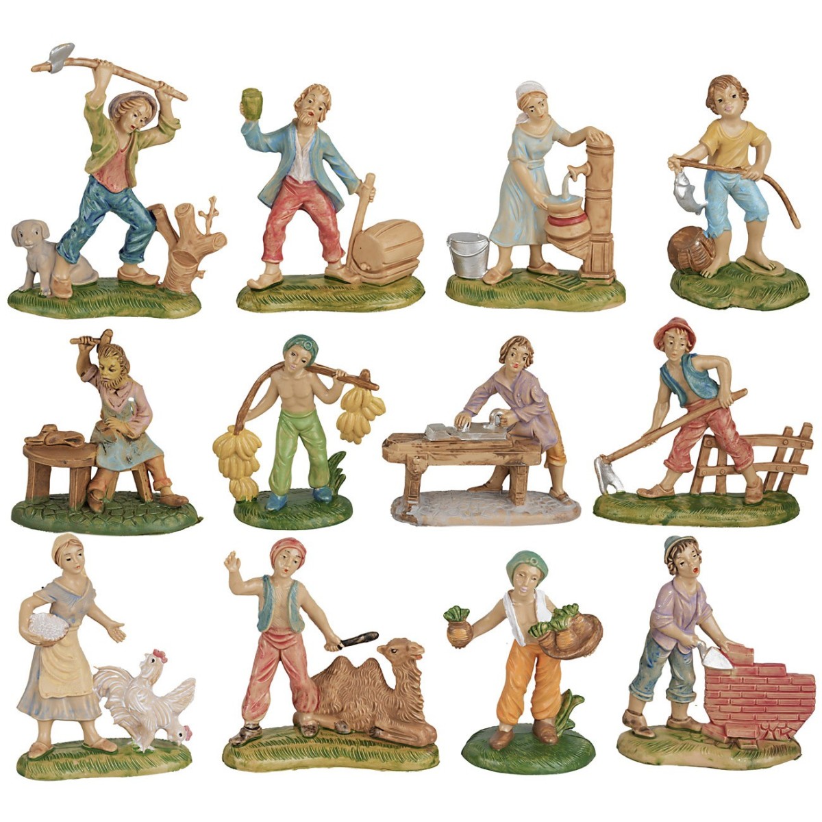 Set di 12 statue in pvc con effetto legno, di altezza 8 cm, è realizzato in Italia. Le statuine, ideali per arricchire presepi o ambientazioni, aggiungono un tocco artigianale e tradizionale al tuo allestimento. Il set comprende le 12 statuine presenti in foto.