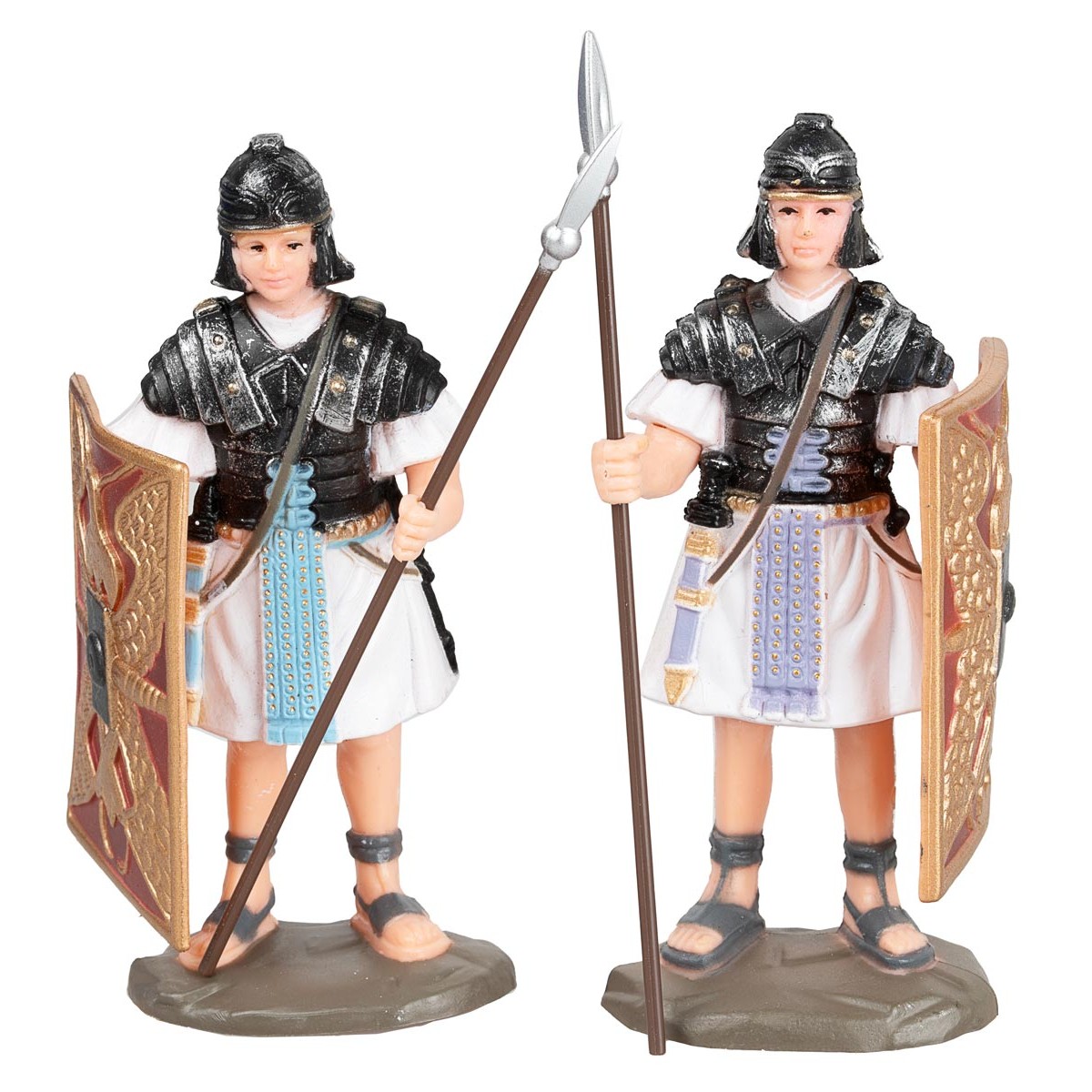 Coppia di soldati romani con lancia e scudo in PVC 8,5 cm per Coppia di soldati romani con lancia e scudo in PVC 8,5 cm per Coppia di soldati romani con lancia e scudo in PVC 8,5 cm per