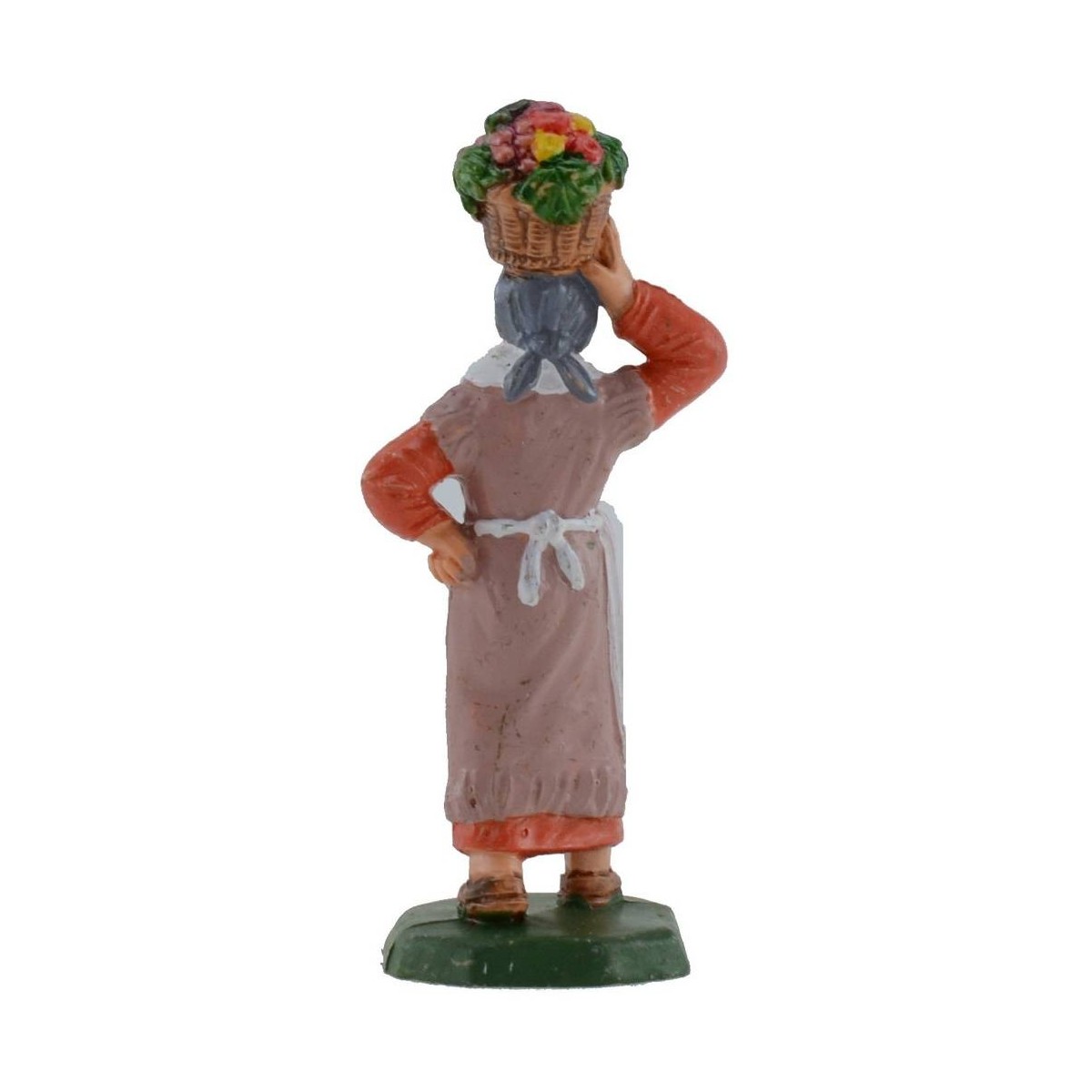 Donna con cesto di frutta sul capo serie lux 8 cm, statua per presepe in pvc.