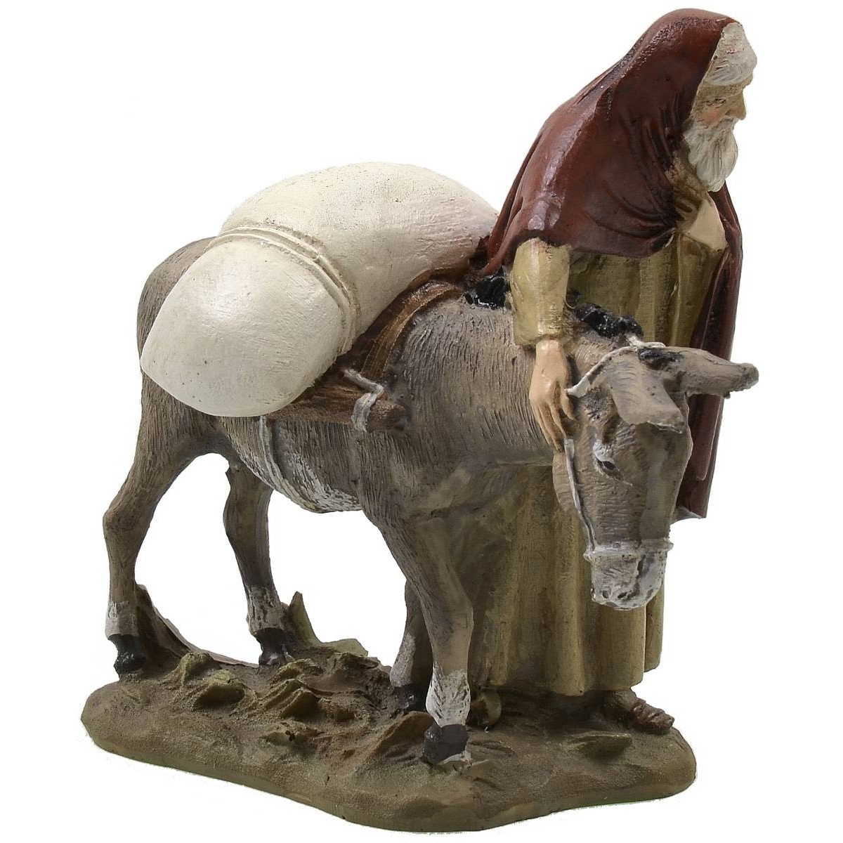 Viandante arabo e asino carico con sacco di altezza 10 cm. Questa serie economica d'importazione è stata disegnata dallo scultore Martino Landi ed è prodotta in resina dipinta.