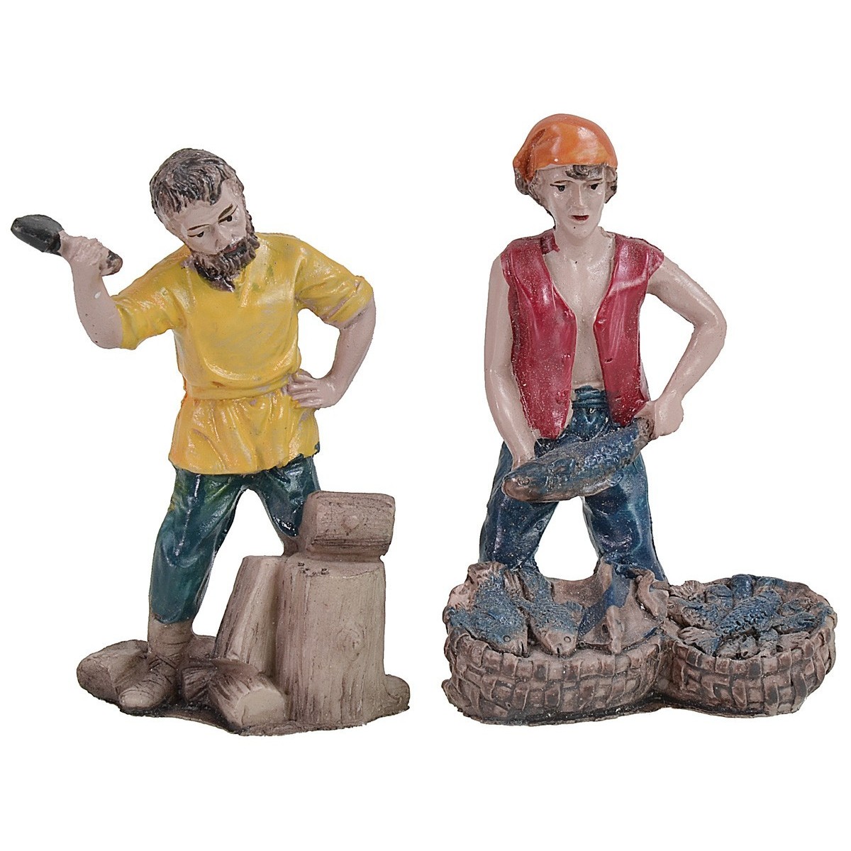 Set 5 figure 9 cm in resina composto da: acquaiolo, boscaiolo, pescivendolo, pescatore e pia donna.