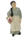 Donna anziana d'altezaa 8 cm con cesto d'uva in resina dipinta a mano.