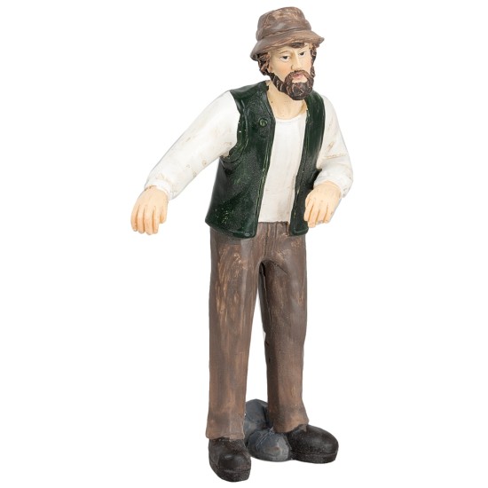 Statua in resina raffigurante contadino con cappello, barba e gilet verde, di altezza 15 cm.